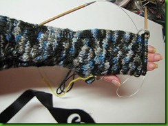 I’ve made a few pair, knew the pattern well by now and needed to finish them for the confidence boost. 20 rows, & the thumb is all I had to finish them off. 15 minutes later I slipped my hand inside feeling pretty good……and forgot