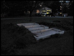 My potato buckets…I dumped the second and this is the harvest from both. That is a salad plate, not a supper plate. Next year they will be planted in the garden or with tires.
